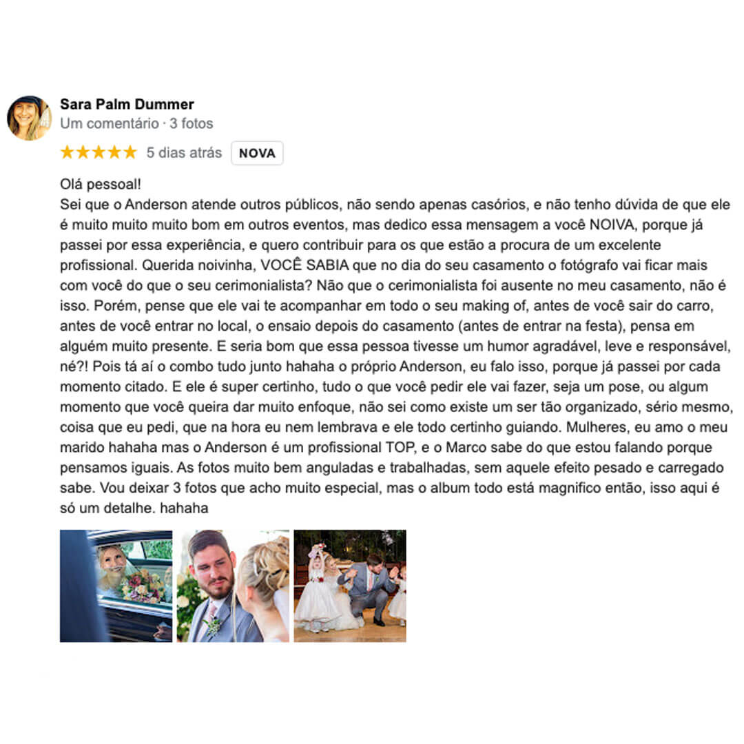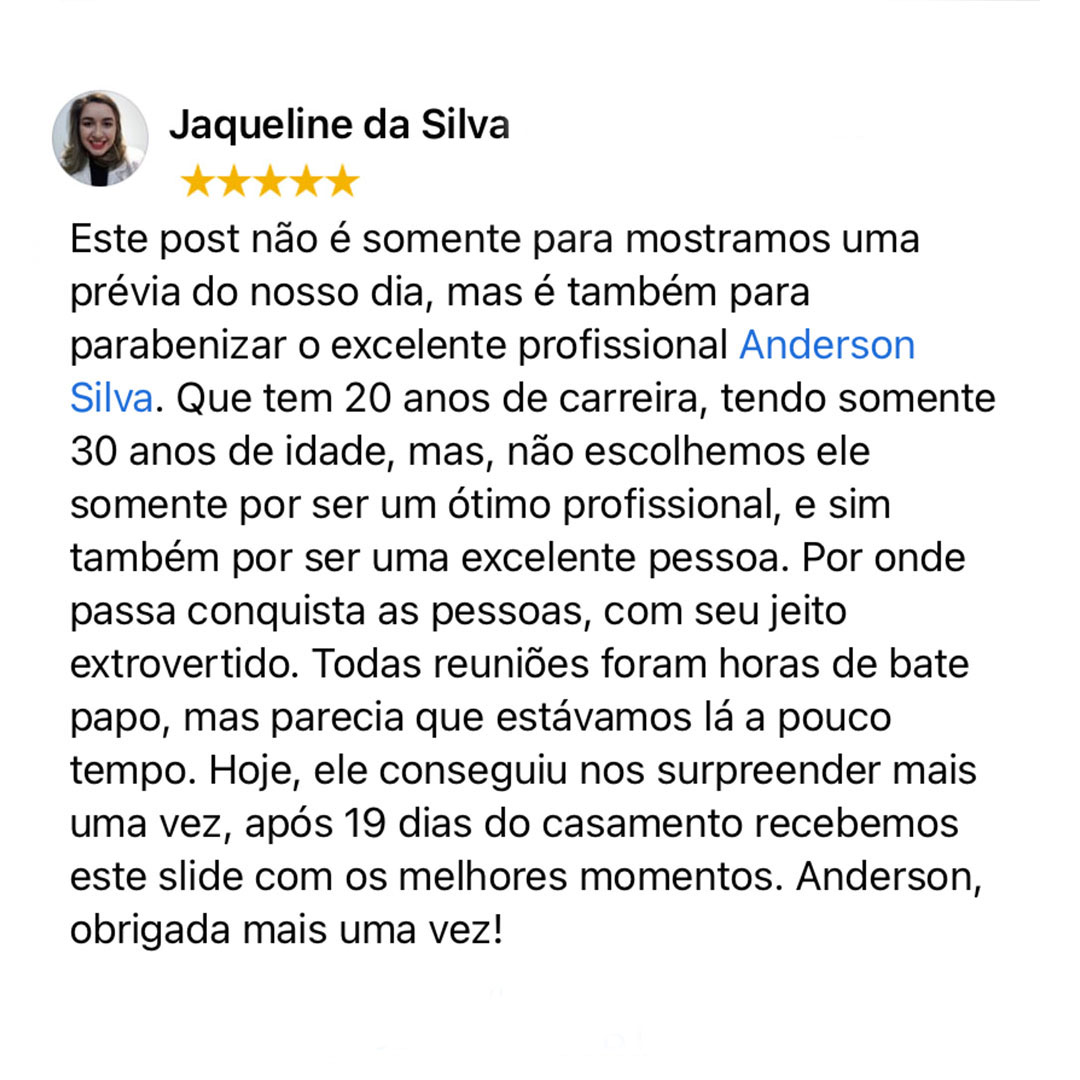 “Fotógrafo apaixonado por sua família, viagens e pelo que faz, que é viver histórias de momentos felizes com as pessoas. Sempre em busca de demonstrar como tudo realmente aconteceu. Presente de corpo e alma para buscar as fotos mais emocionantes! Procura ter a melhor sintonia possível com o com o casal para fazer de um dos dias mais importantes de suas vidas uma experiência inesquecível, que irá além de suas fotografias”